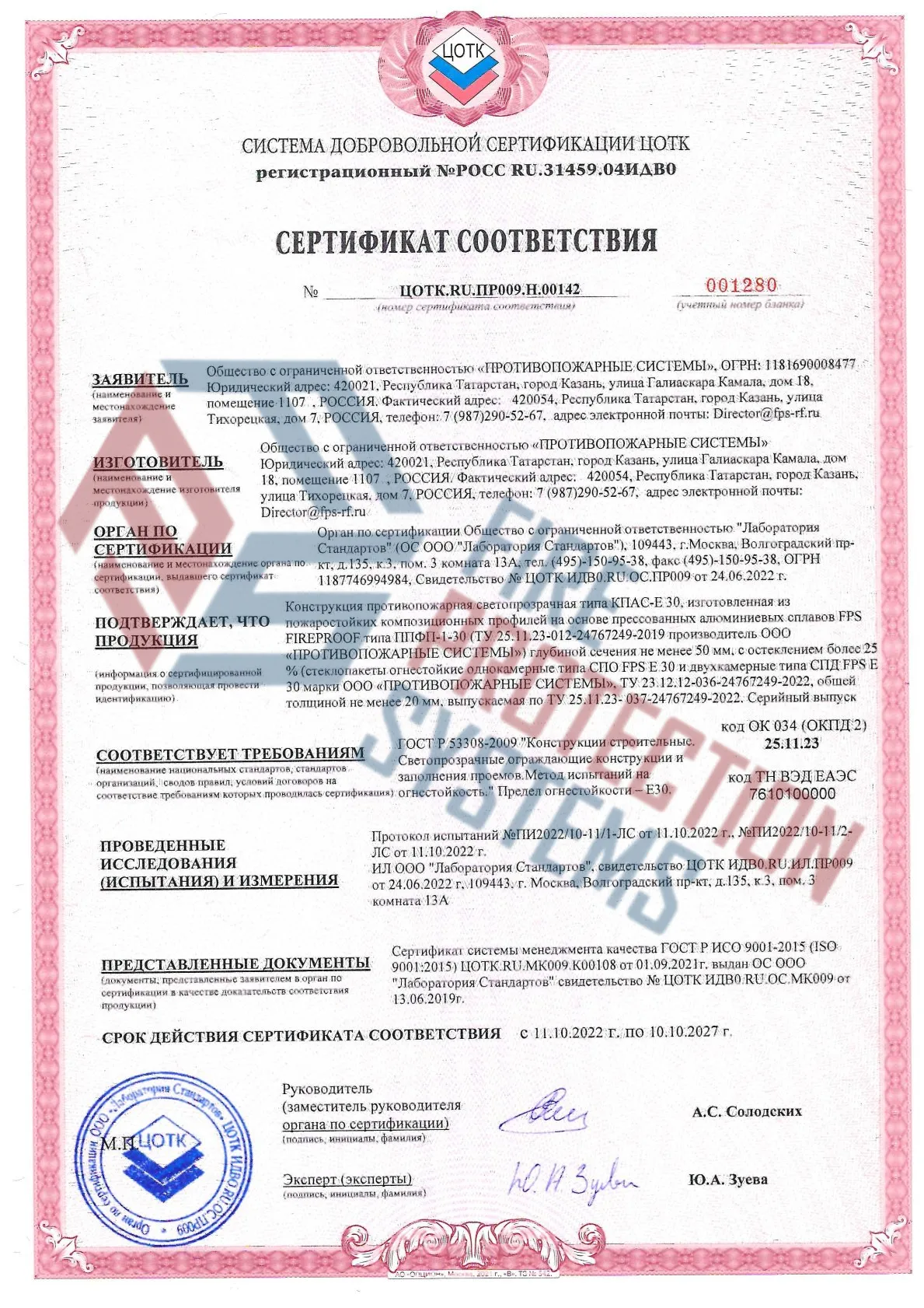 Противопожарные светопрозрачные перегородки отличаются следующими свойствами: